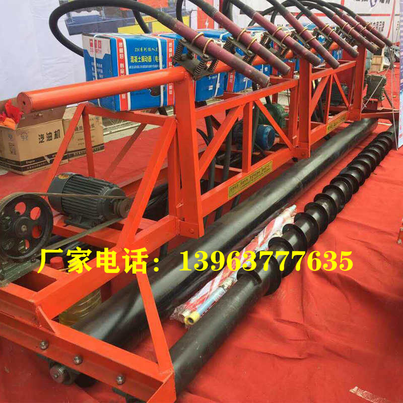 4、 一体化整平头:由刮板、振动器、振动板、搅笼等部件组成,将搅拌、找平、振平、振捣,等多道工序整合到一起,由机器一次性完成。提高功效,节省人工。